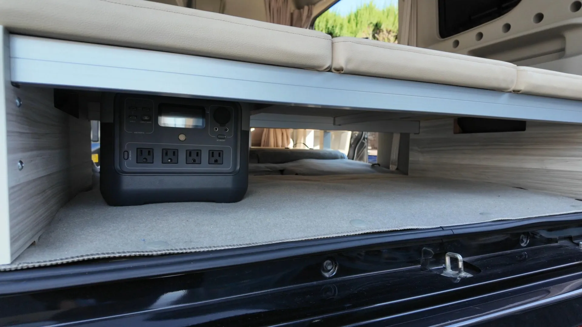 ベッドマットの下部は、キャンプギアやポータブル電源、着替えなどを効率よく収められる大容量の収納スペースとして活用できます。テーブルもマットと一緒にスッキリと収まるよう設計されており、デッドスペースを徹底的に排除しました。整理整頓がしやすいため、車内が散らかることなく、常に清潔で広々とした居住空間を維持することが可能です。