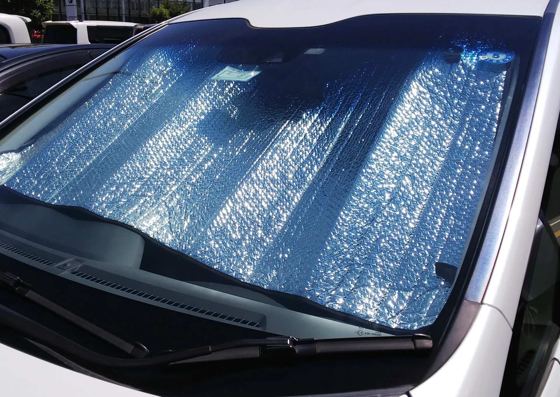 カーテンではなく、吸盤などで窓枠にぴったりフィットする断熱シェードを選んでください。銀マット素材のような反射率の高いものを使用することで、昼間の熱をシャットアウトし、夜間の車内温度上昇を抑えます。
